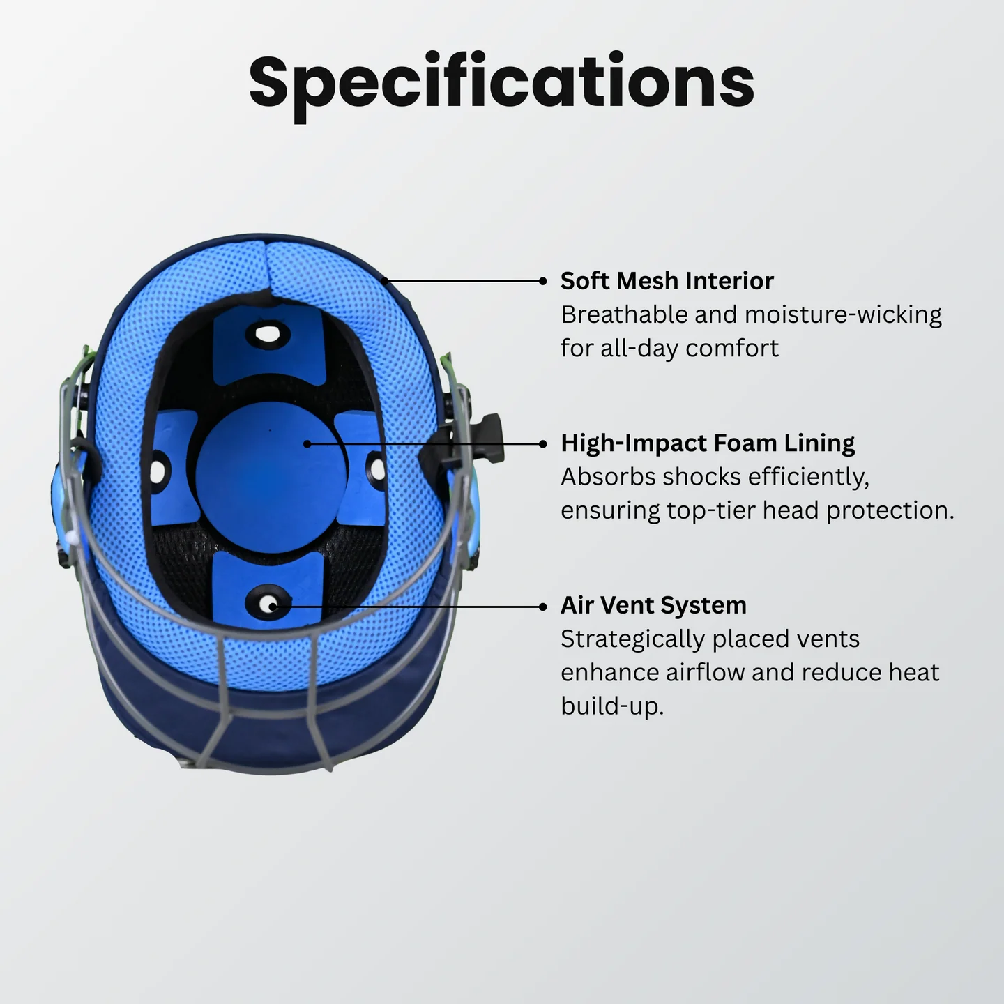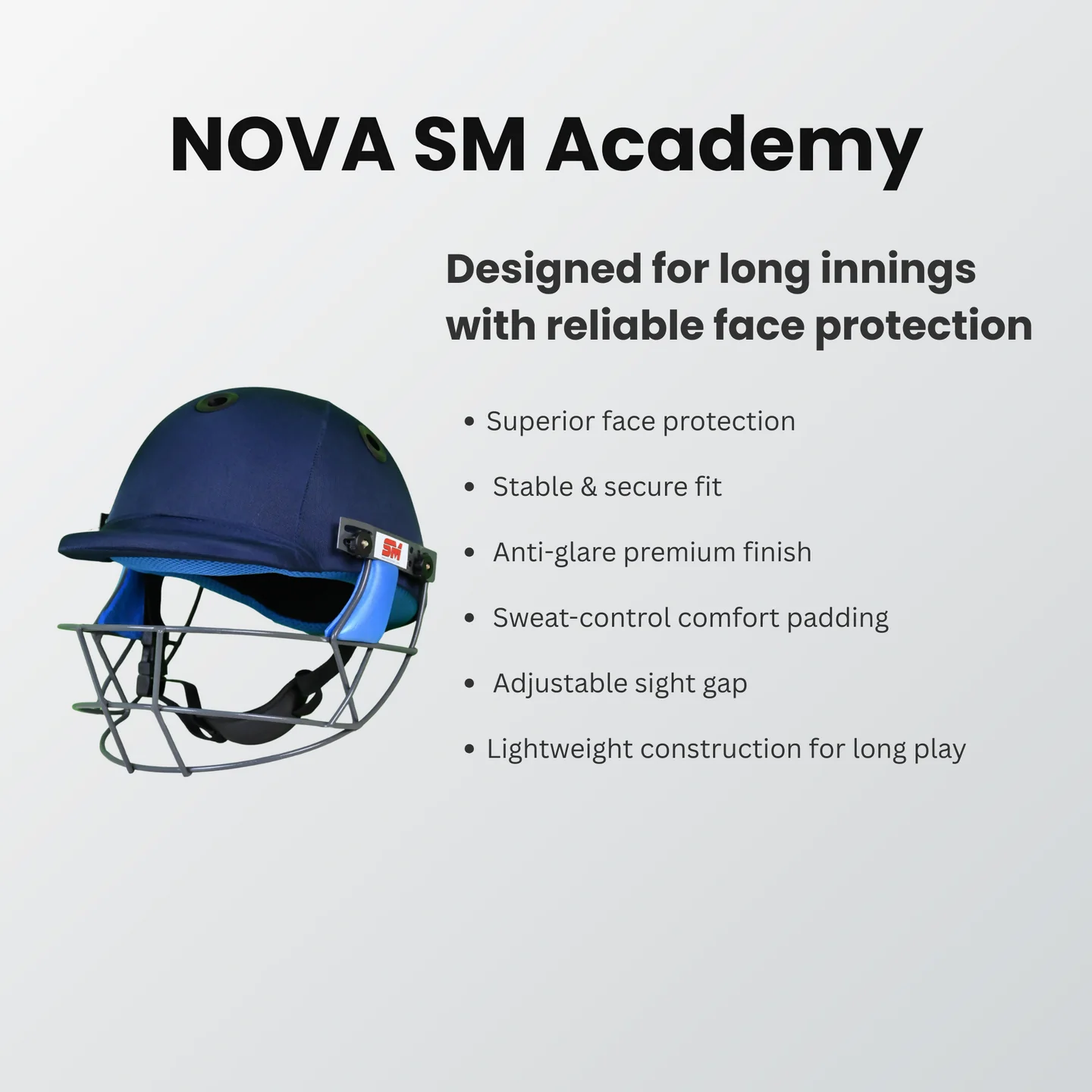 Engineered for peak performance and ultimate protection, the NOVA D Sports Academy Cricket Helmet keeps athletes confident on the field. Designed for serious cricketers, it combines lightweight construction with superior impact resistance to safeguard against high-speed balls and accidental collisions. The ventilated design ensures maximum airflow, keeping players cool during intense matches, while the adjustable inner padding provides a custom, secure fit for all head sizes. Ideal for training and competitive play, this helmet merges safety with comfort, allowing cricketers to focus entirely on their game without distraction. Step into every match with confidence and style.